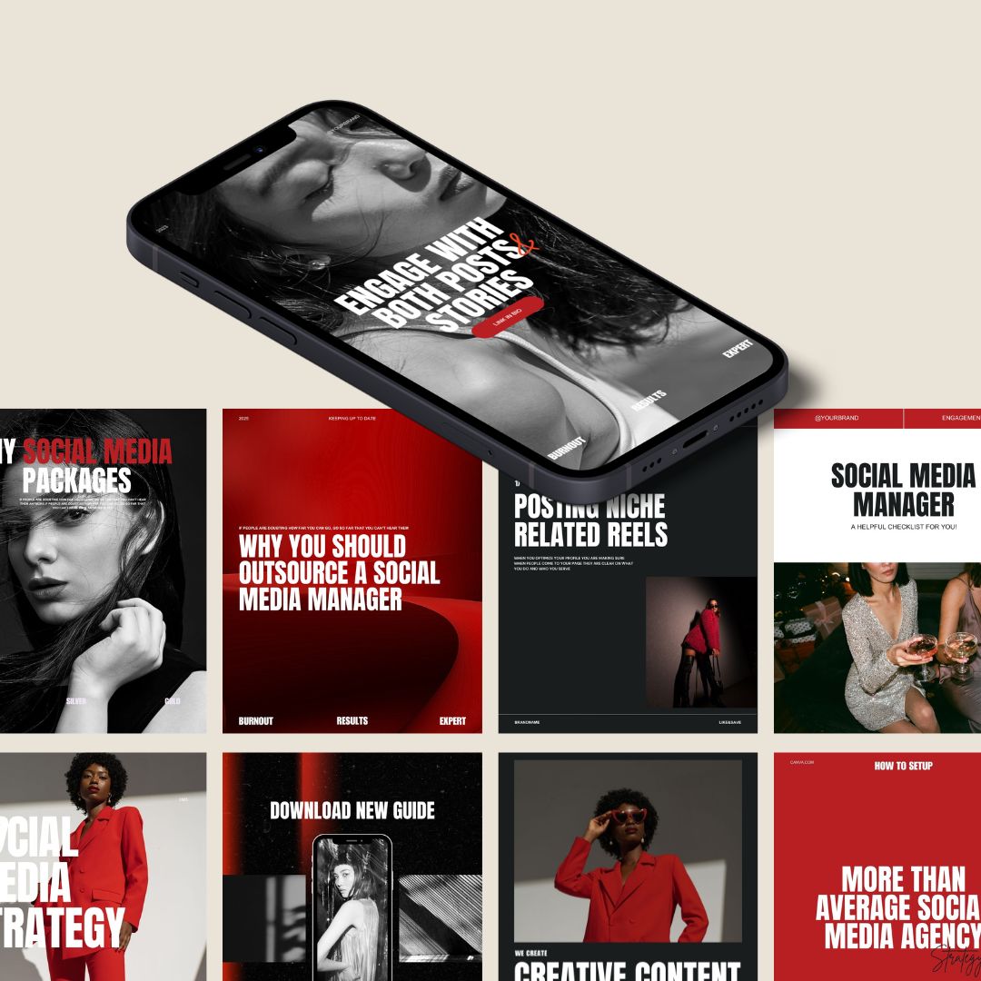Bold. Confident. Magnetic. Just like the gemstone, the Ruby collection is all about making a powerful statement on Instagram. Designed for marketing + PR agencies who want to showcase authority and attract premium clients with striking visuals.